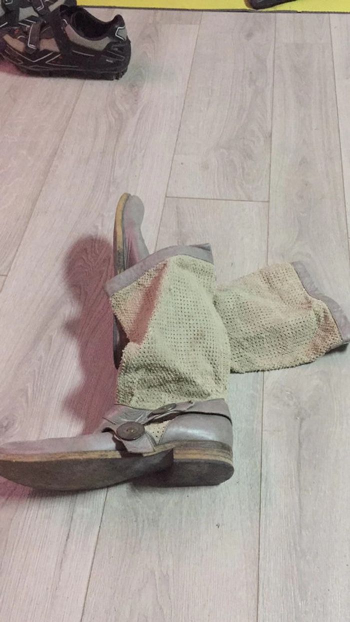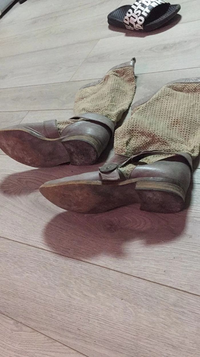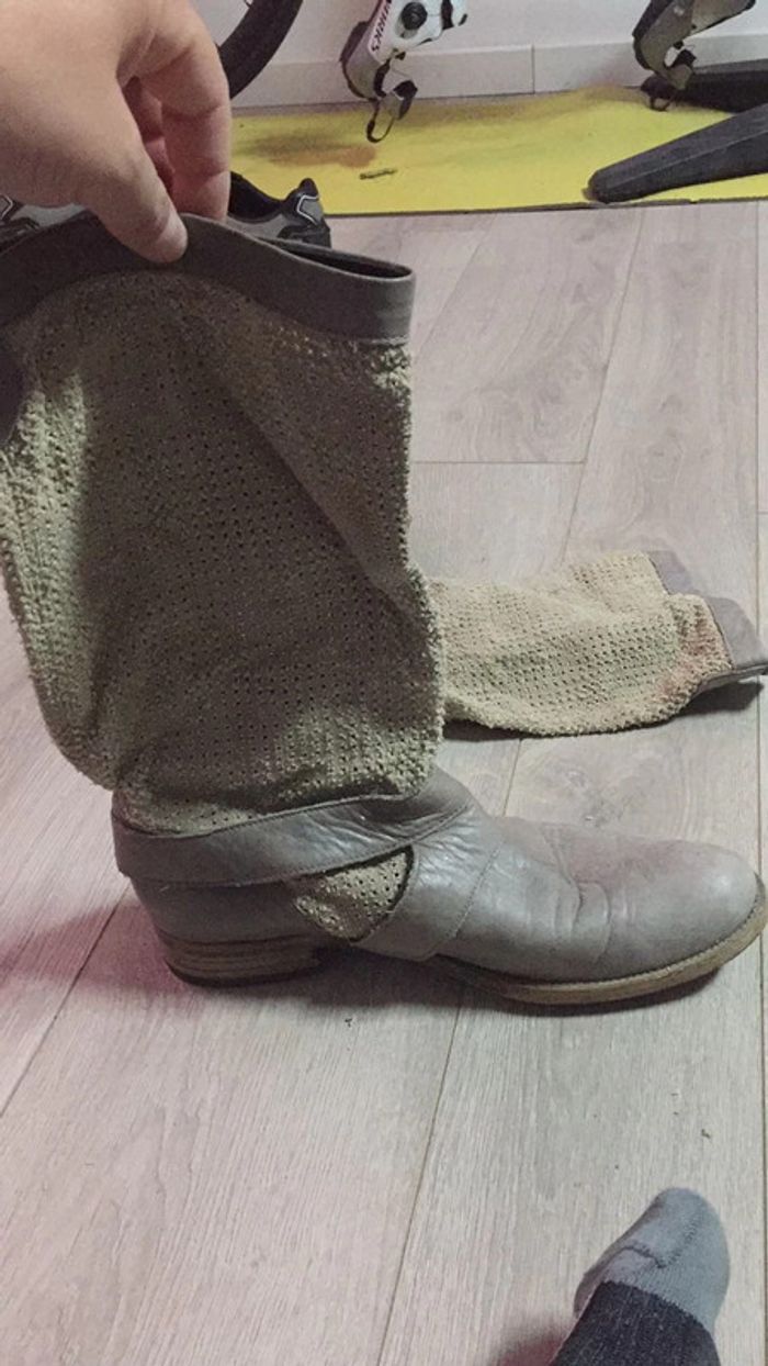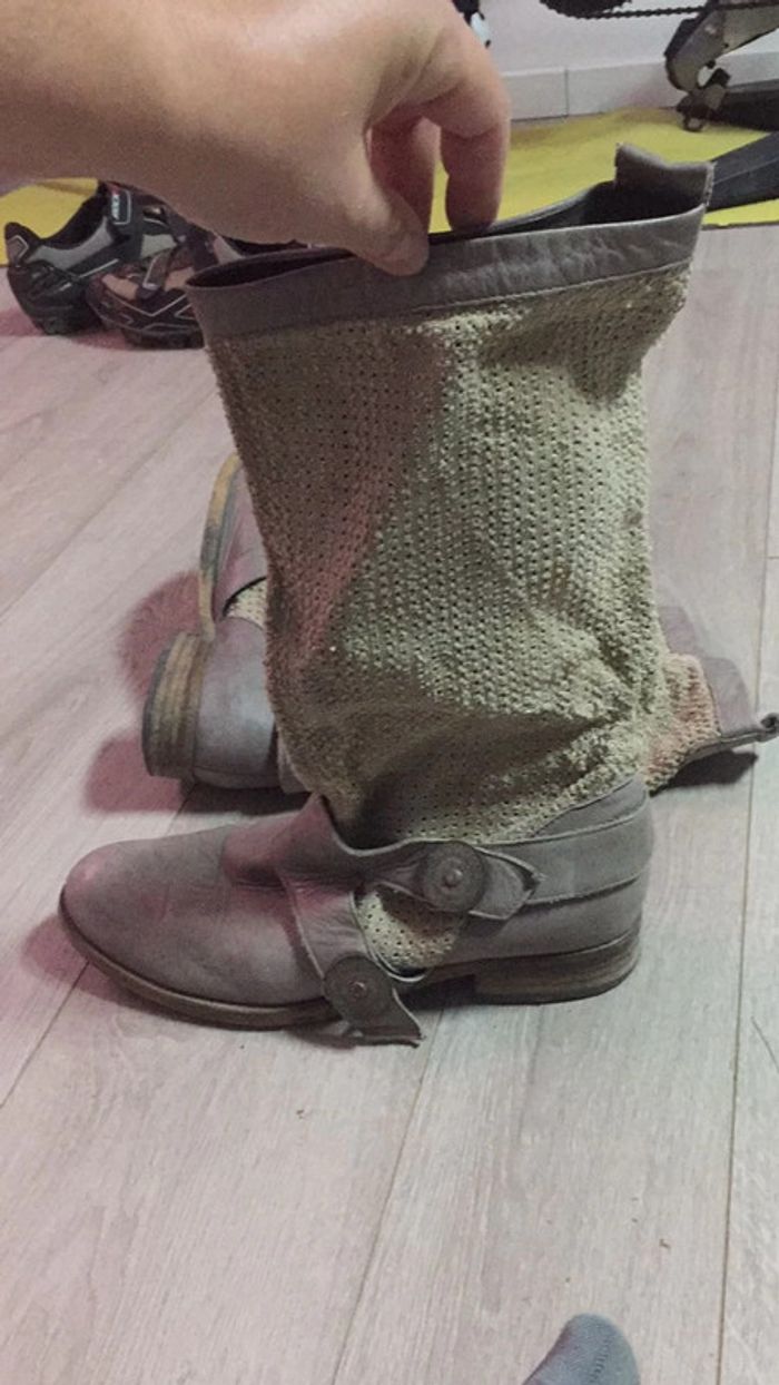 peu portées bottines de créateur tombantes sur la cheville couleurs: beige et gris sable 100% cuir intérieur extérieur et semelle taille 39 payées + 110€