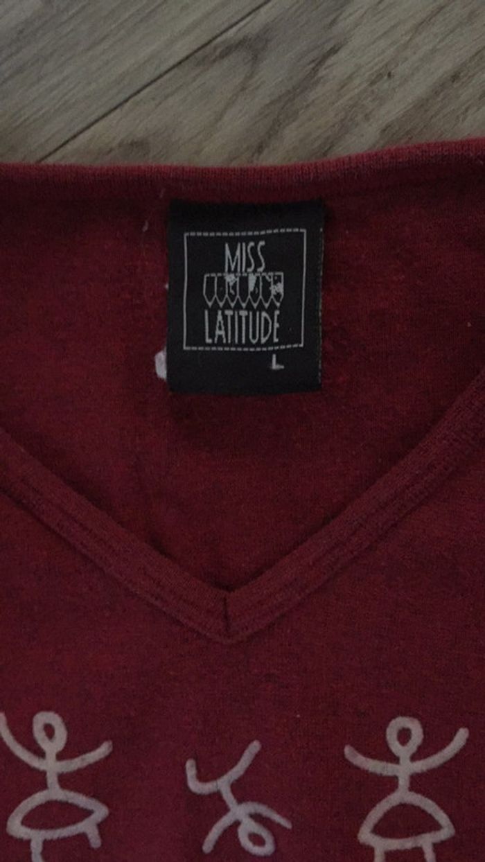 haut manches longues col V bordeaux Chiné jamais porté marque miss latitude