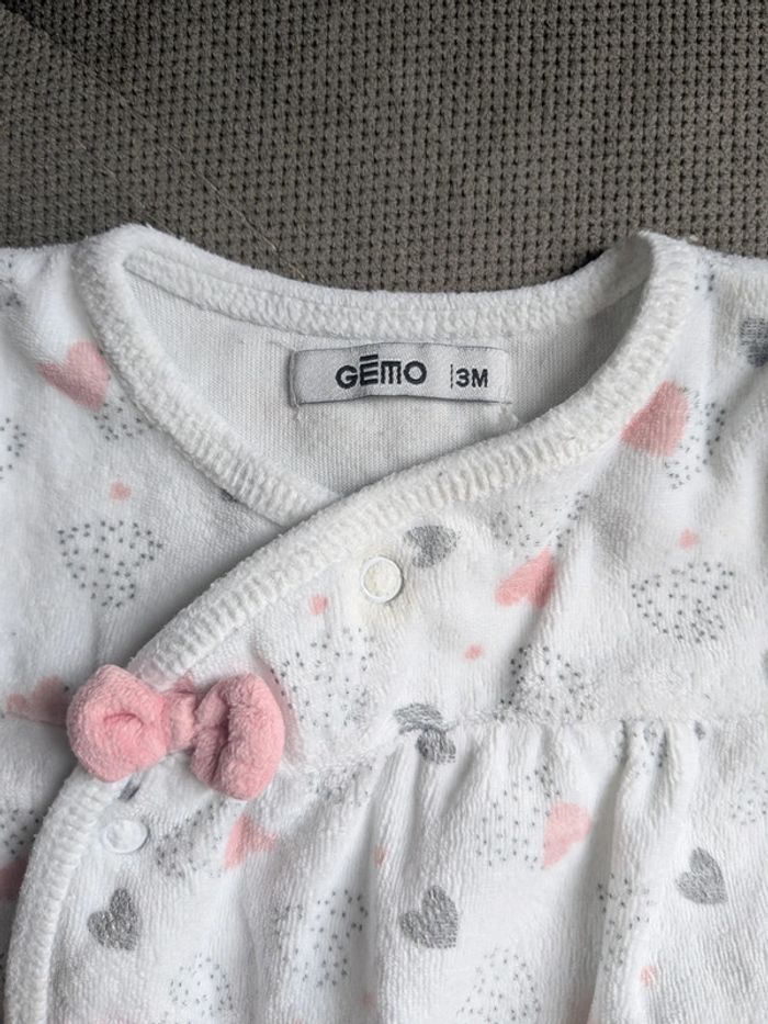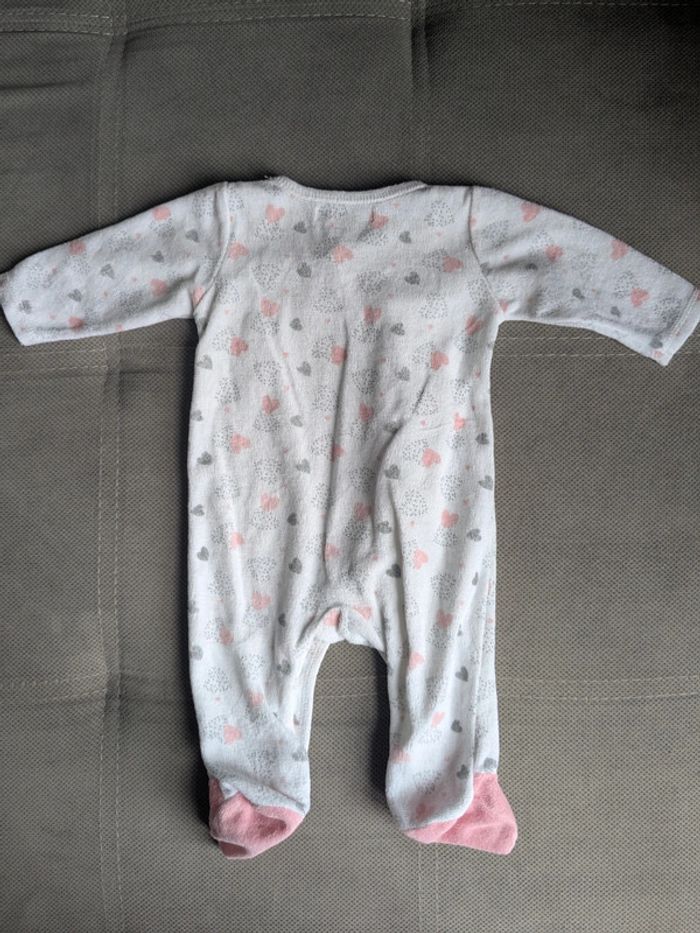 Pyjama velours fille. Légère tâche sur le premier bouton qui pourrait partir au lavage (voir photos). Taille 3 mois