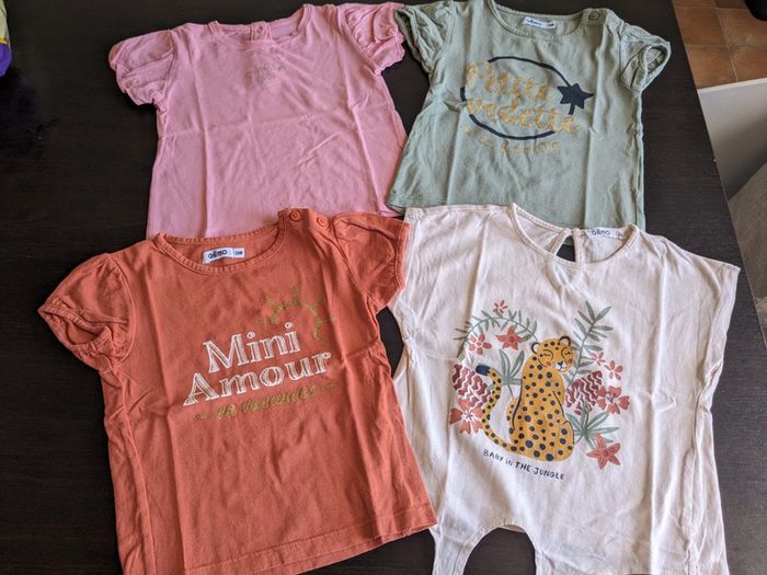 Lot de 4 t shirts. T-shirt rose manches bouffantes et t shirt tigre lien noeud. 24 mois. #flosb01fille2ans