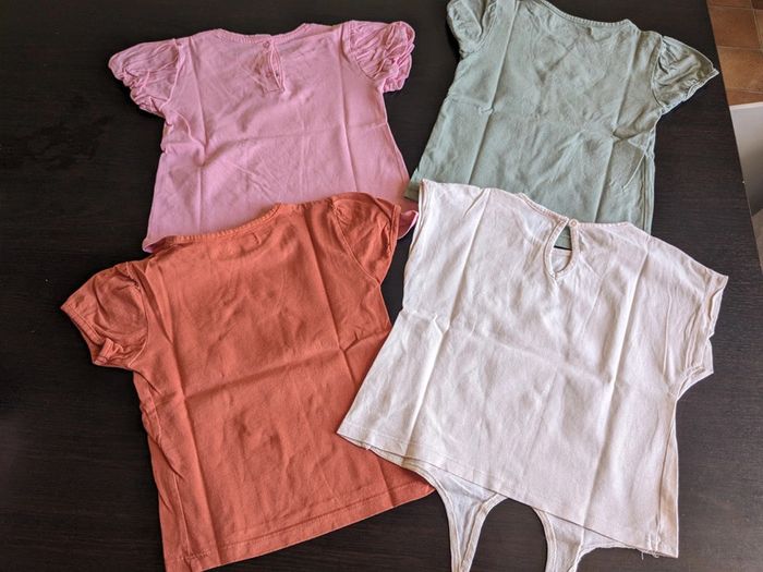 Lot de 4 t shirts. T-shirt rose manches bouffantes et t shirt tigre lien noeud. 24 mois. #flosb01fille2ans