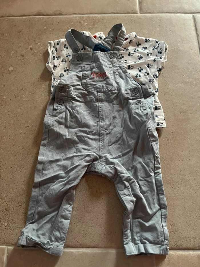 Ensemble salopette et tee shirt bébé garçon Taille 12 mois Motif Mickey Idéal printemps été porté une fois car mon fils est passé directement au 18 mois. Collection 2024