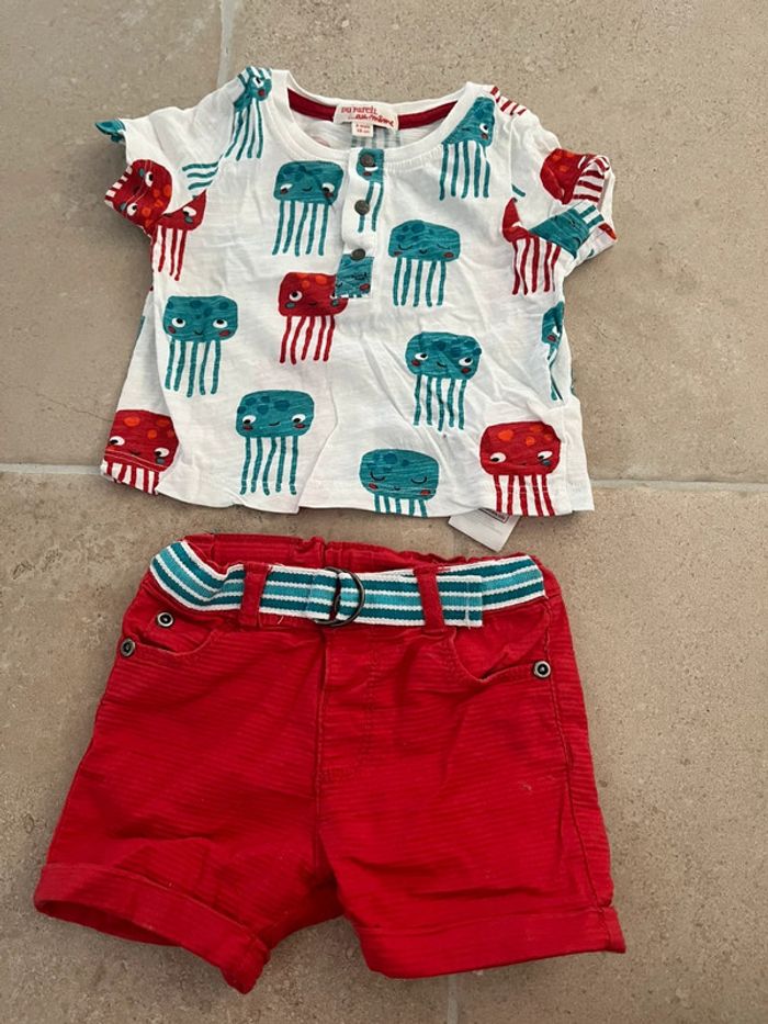 Ensemble composé d'un tee shirt manches courtes et d'un short pour bébé garçon Marque Du Pareil au même DPAM Taille 6 mois Excellent état Collection 2023, vêtements première maison, maison non fumeur