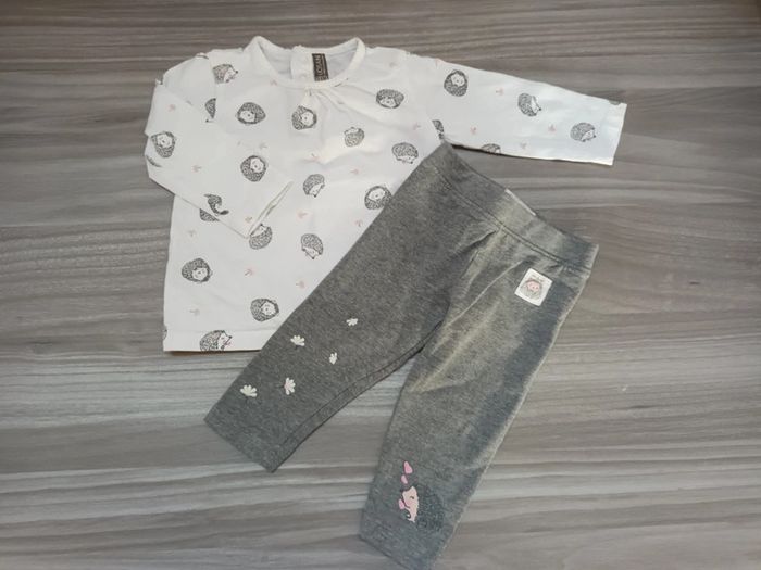 Ensemble Losan comprenant un t-shirt ML et un legging en TB état. Tache discrète à l'arrière de la manche gauche. #laetid7787_6mois