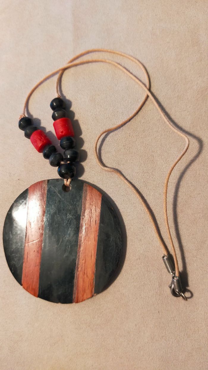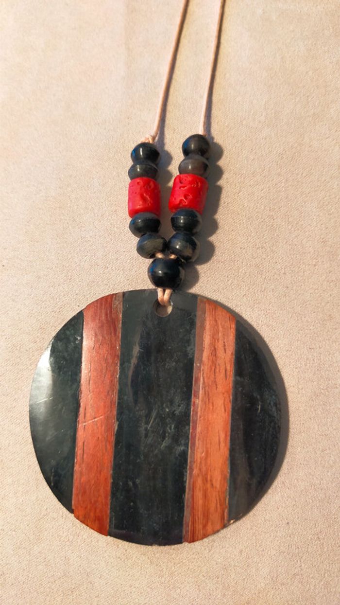 Collier pendentif rond noir & bois – Style ethnique - photo numéro 9