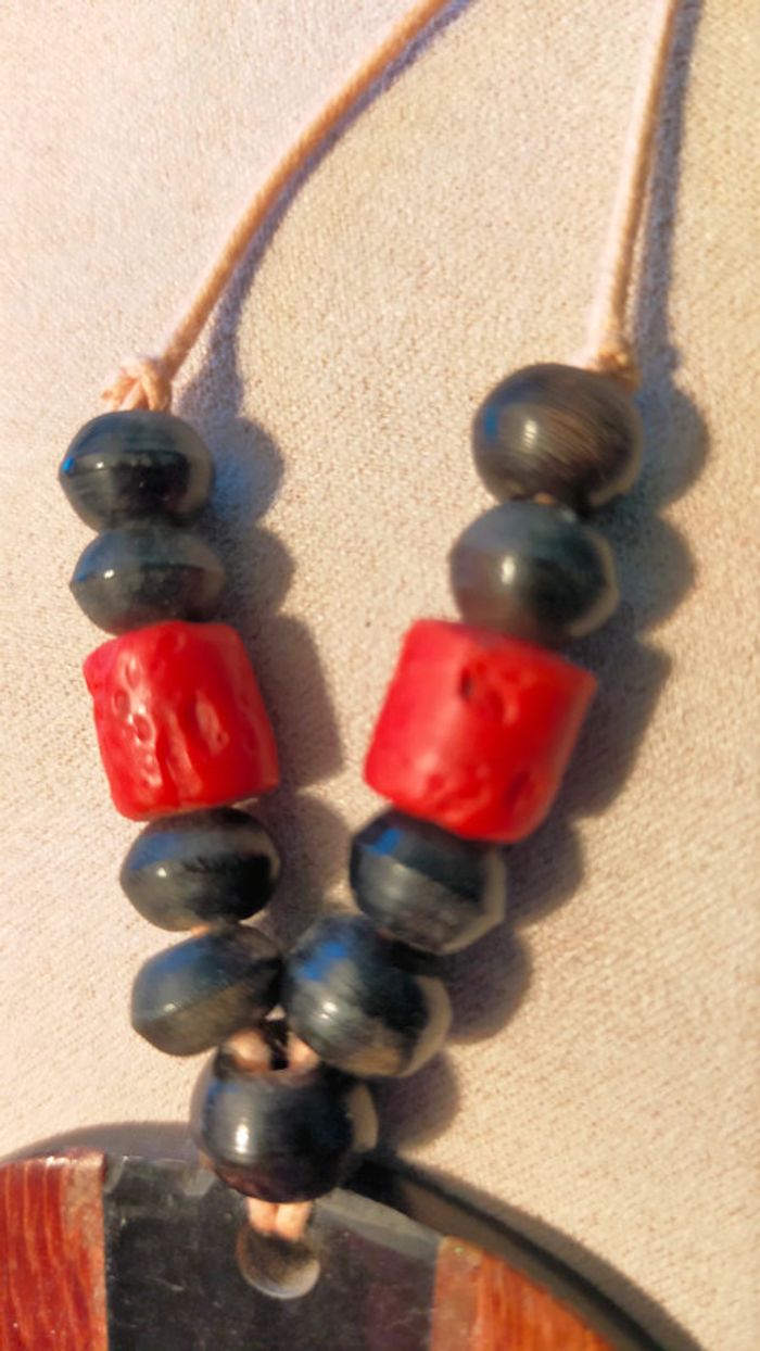 Collier pendentif rond noir & bois – Style ethnique - photo numéro 7