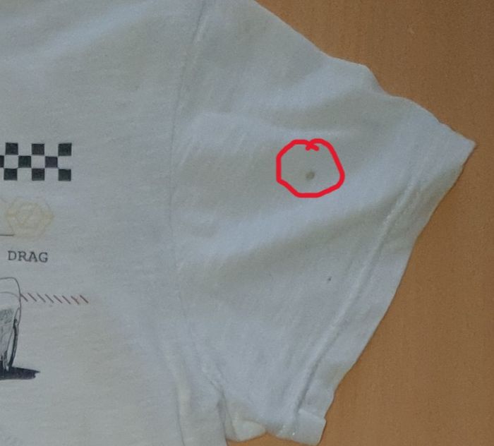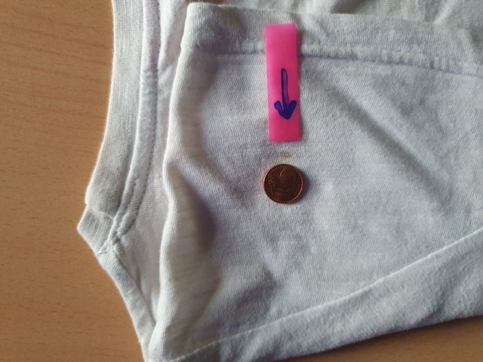 Devant, petite tache sur la manche gauche (photos 2 et 3)