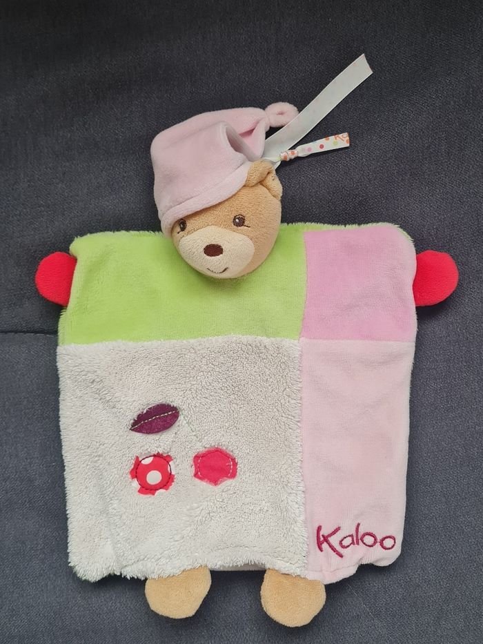Doudou marionnette ours blanc , vert ,rose - Cerise - Kaloo