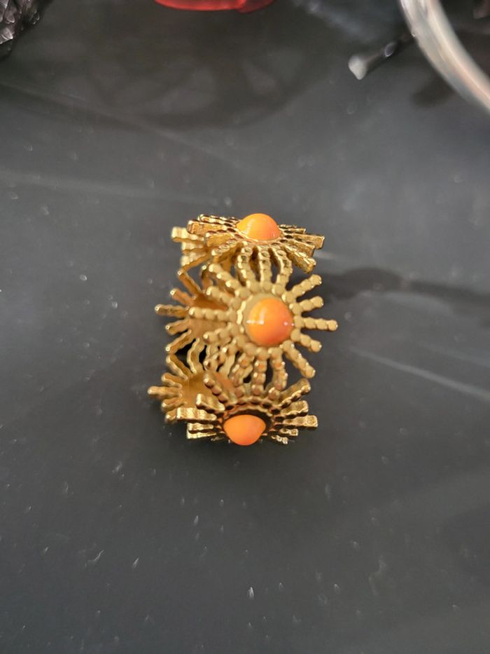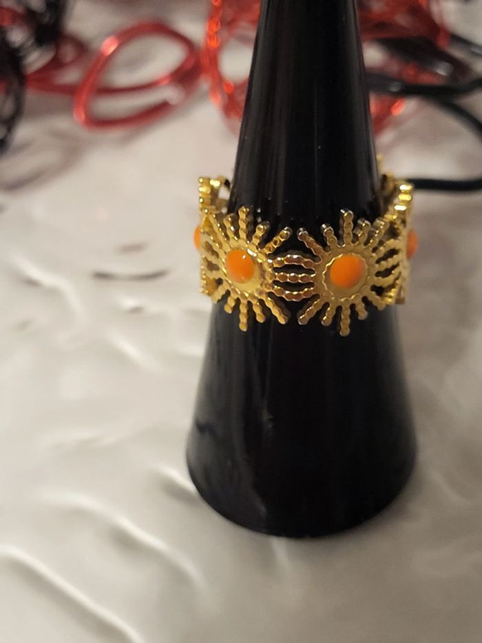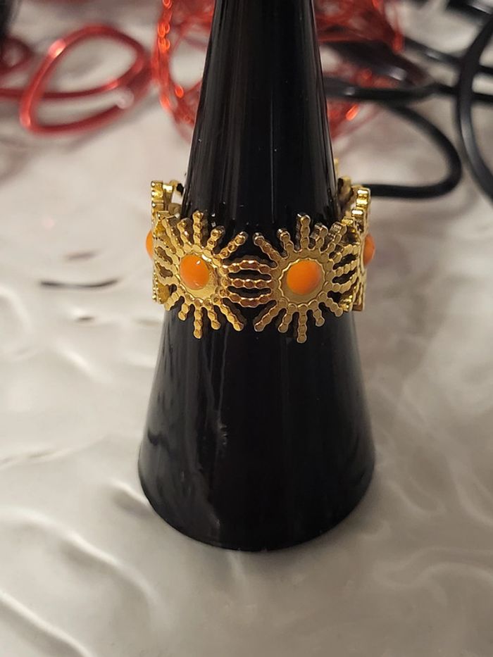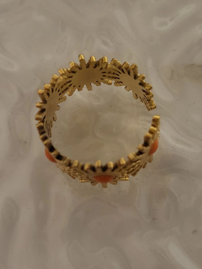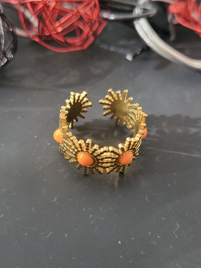Bague ajustable acier inoxydable dorée Soleil avec pierre orange Bague neuve Envoi rapide et soigné Remise sur lot
