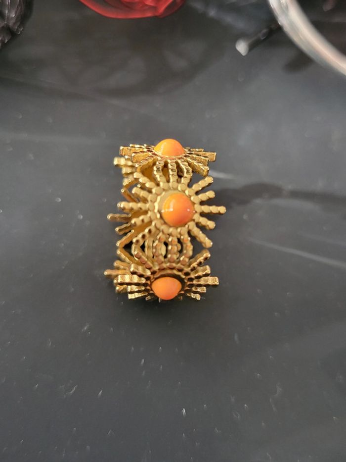 Bague ajustable acier inoxydable dorée Soleil avec pierre orange - photo numéro 1