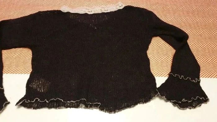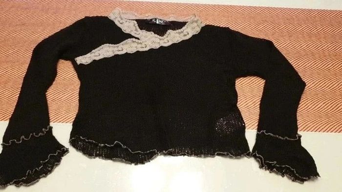 Petit pull en maille ajourée taille 6 ans manches fantaisies #fille6_mondressing11_bv Boite 6ans
