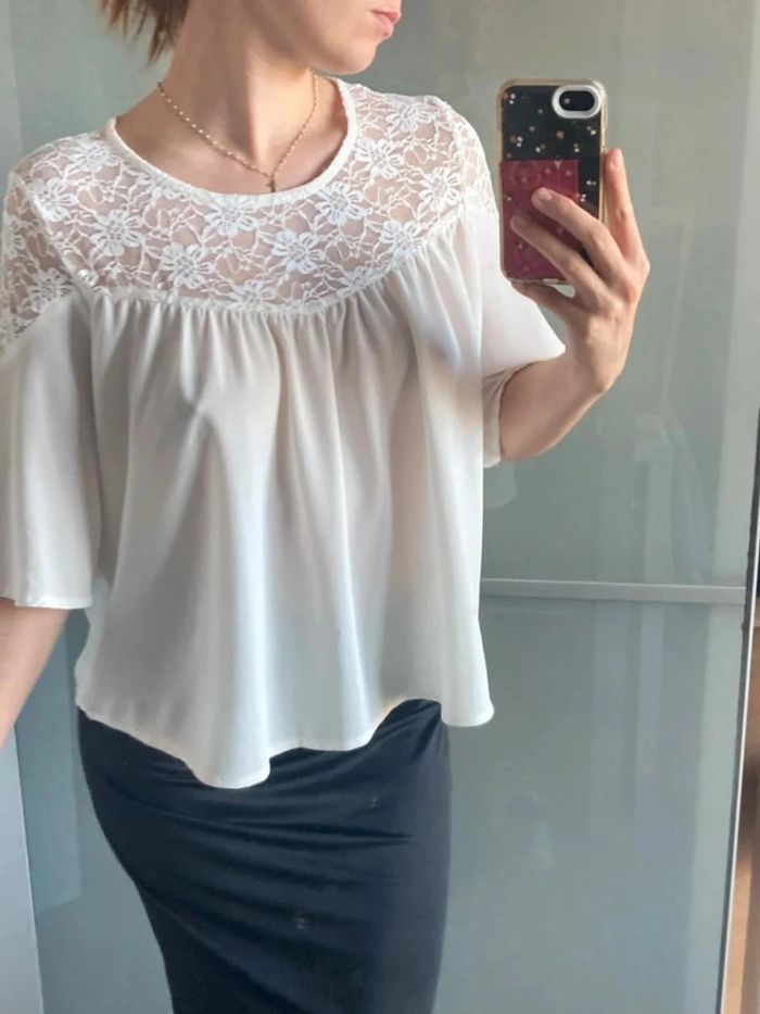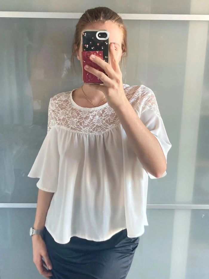 Jennyfer, taille M, top ample fluide, dentelles, 2 micro taches #femmeM_mondressing11_bv Boite H