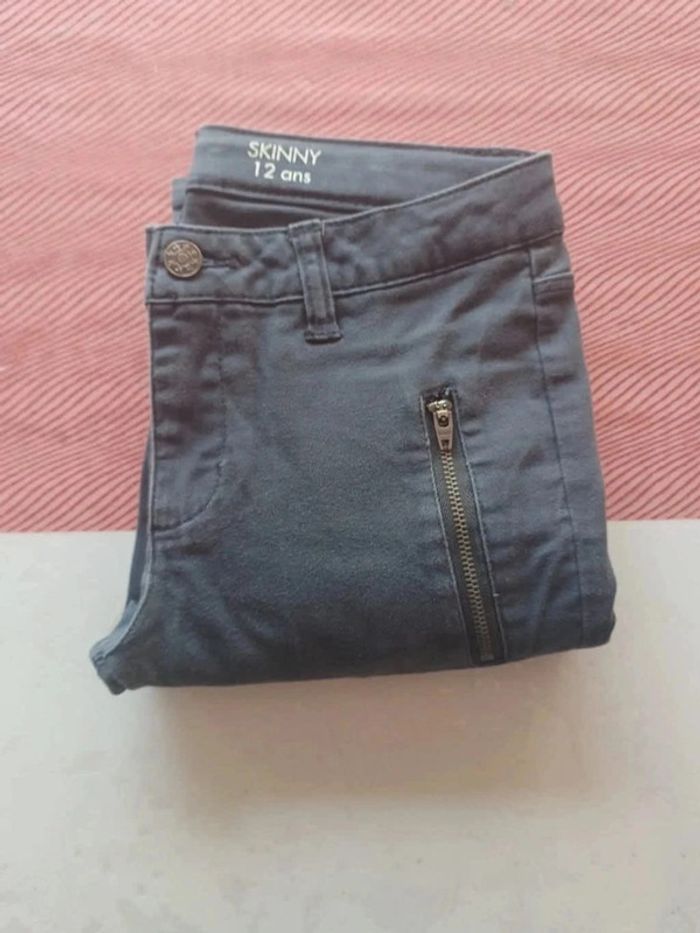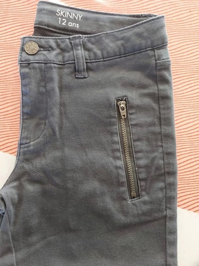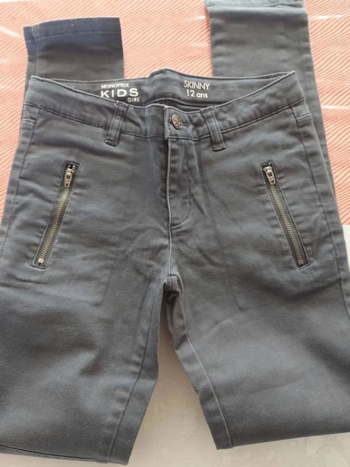 Jean gris skinny 12ans taille réglable Monoprix , plus.claire au coutures et genoux #fille12_mondressing11_bv Boite E