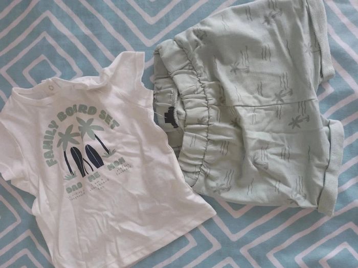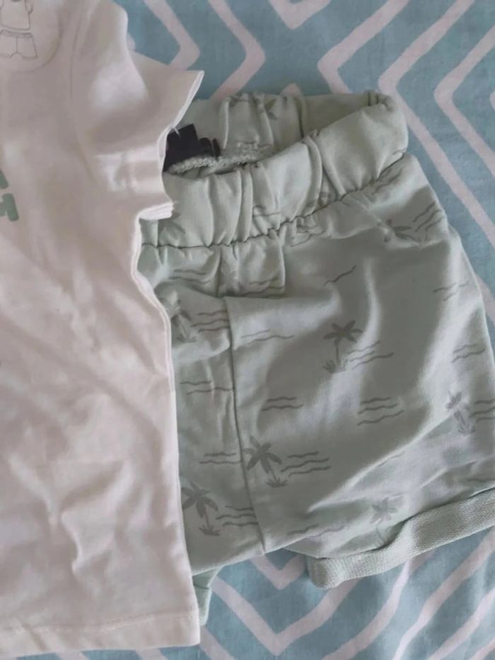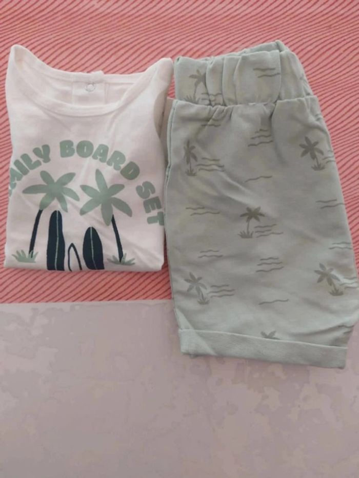 Neuf avec étiquette ( ce qui en reste) ensemble short tee shirt ,9mois, kiabi , motif palmier. #garcon9mois_mondressing11_bv