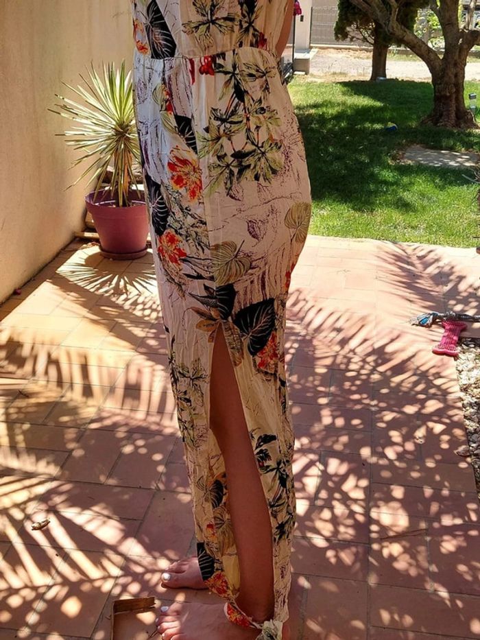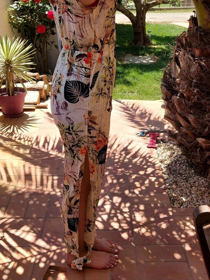Tunique convenant plus a un S , taille indiquée M, porte sur une personne faisant S, trop petite pour moi Petit bouton a la poitrine, bretelles non réglable, élastique taille assez haut #vetementfemmeS_mondressing11_bv