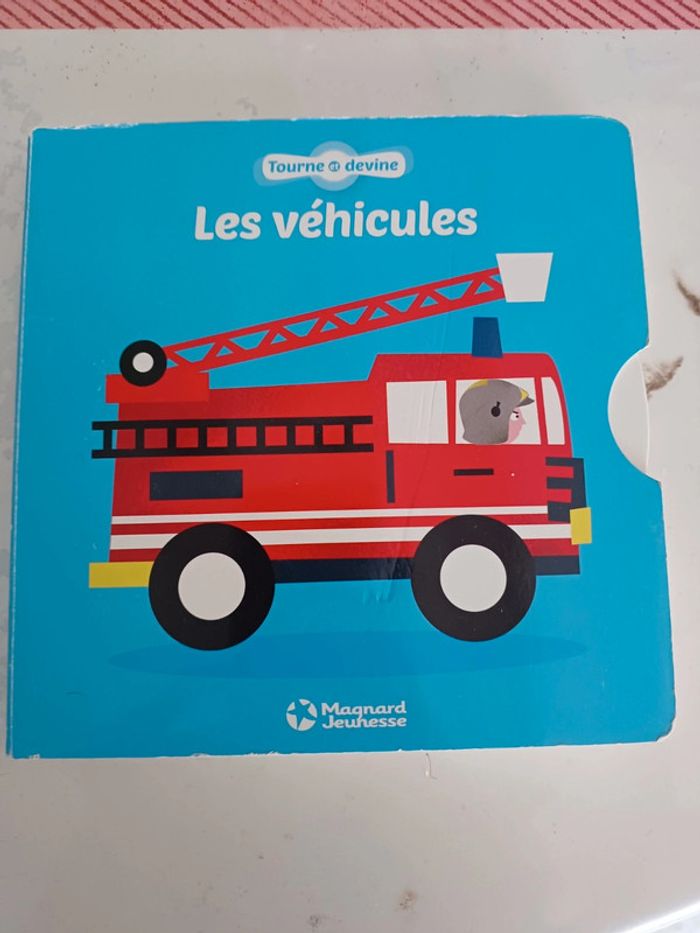 Livre tourné et devine, les véhicules Légèrement abîmé sur la couverture et le 1er véhicule (avion) #livresmondressing11_bv