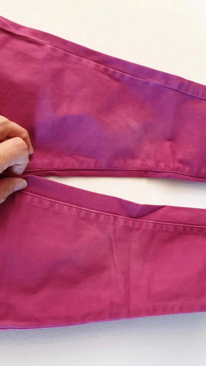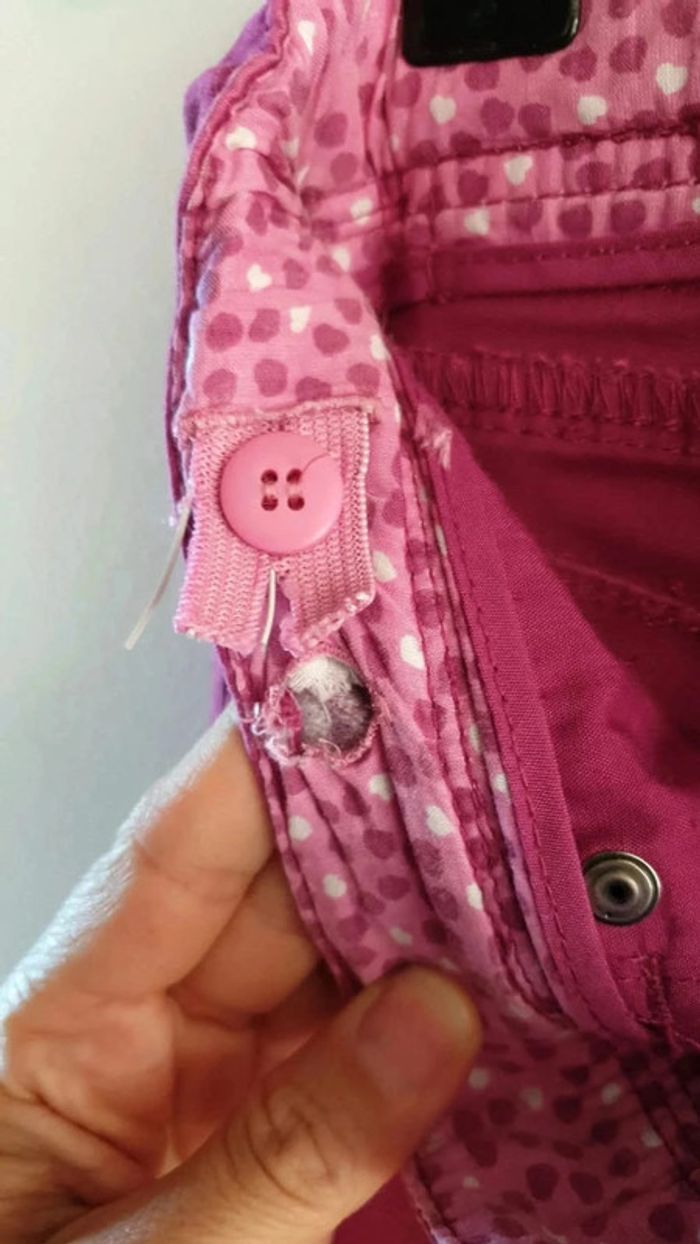 Pantacourt 7/8eme okaidi prune Claire Un peu plus marqué au genou, et abîmé a la taille intérieur vers le bouton de réglage #fille10_mondressing11_bv