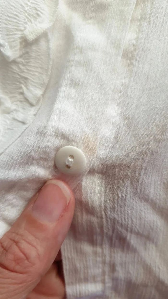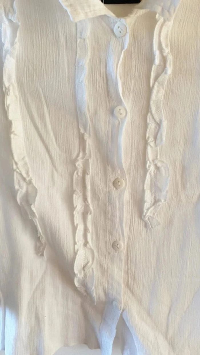 Surper chemise bout des manches a volant , blanche , une petite tache au bouton peine visible, leger, matiere tres agréable et fluide, miss MDP #fille8_mondressing11_bv Boite O