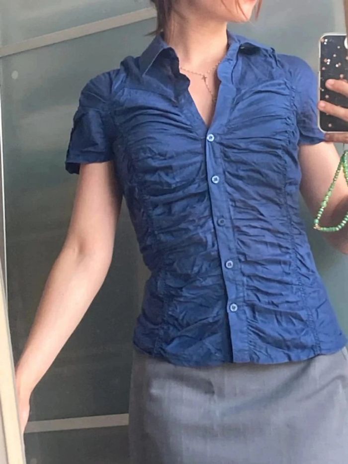 Chemise Manche courte mango Taille S, froncé Tbe, ne convient pas aux forte poitrine (sinon lebouton s ouvre) #vetementfemmeS_mondressing11_bv Boite L