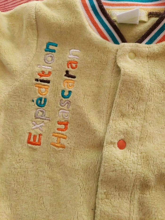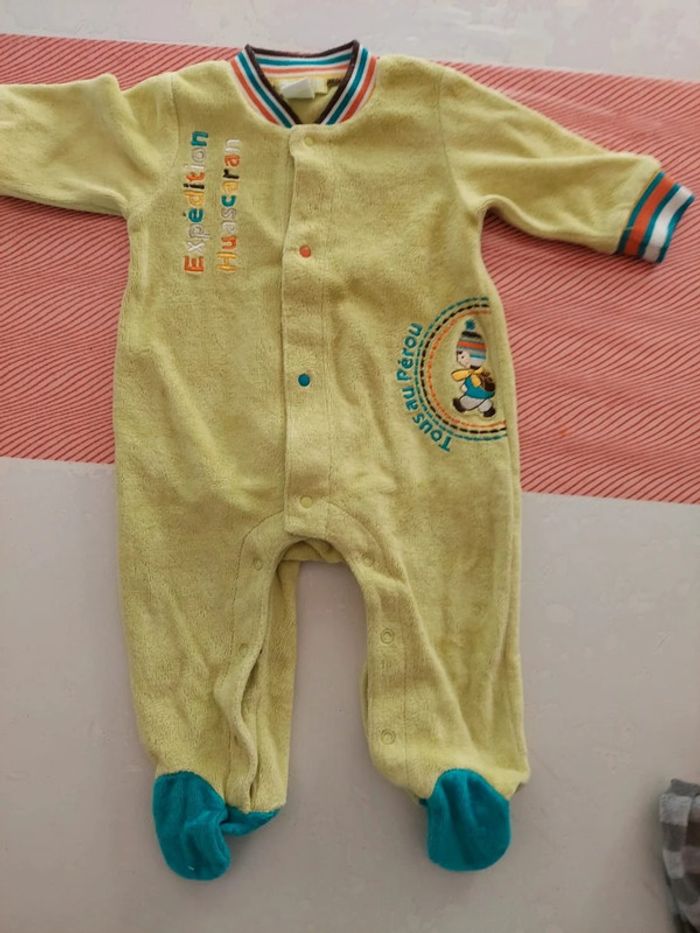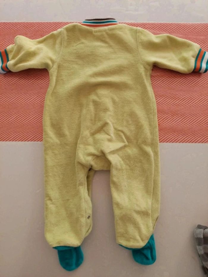 Pyjama vert anis, bleu turquois au pied, orchestra, 3mois, Pression ok #garcon3mois_mondressing11_bv