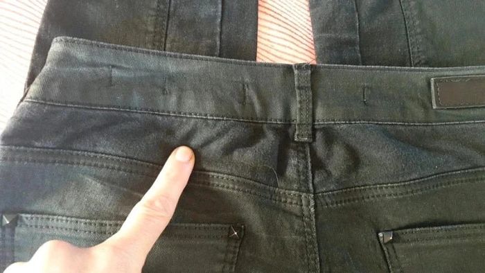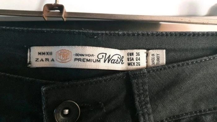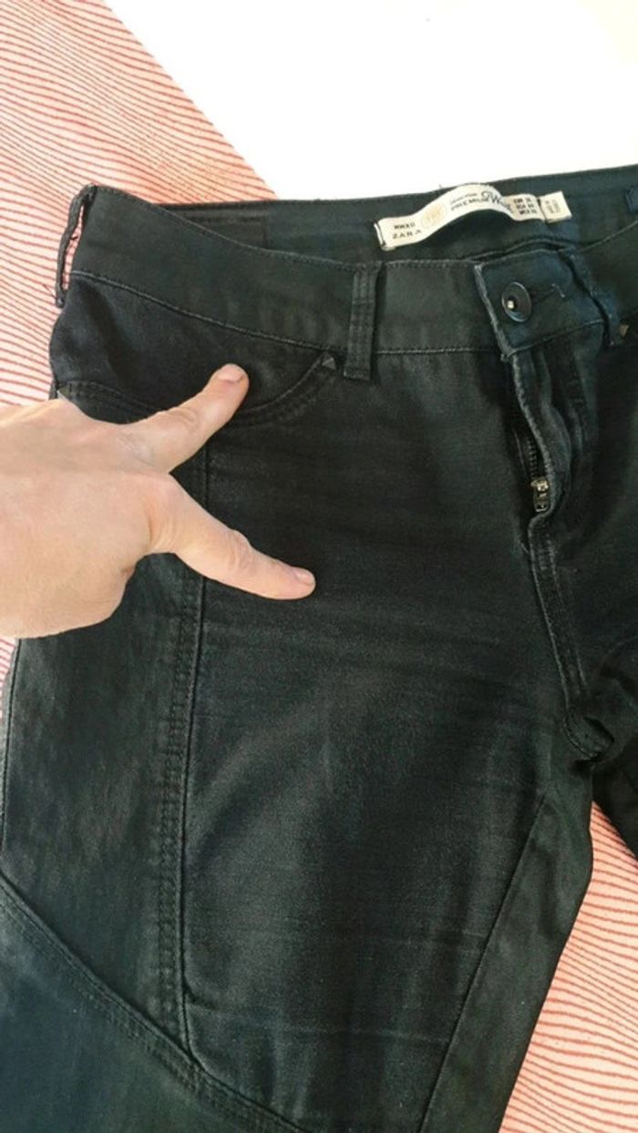 Pantalon bi matiere, toile noire et toile enduite Zara skinny 36 bon etat, mais fripé au fesses qd non porté, chaque photo avec mon doigt montre les partie du jean pu c est de la toile,le reste est enduit,démarqué comme.les pantalon équitation Pas de photos porté je ne.rentre plus dans aucun 36 #femmeXS_mondressing11_bv Boite W