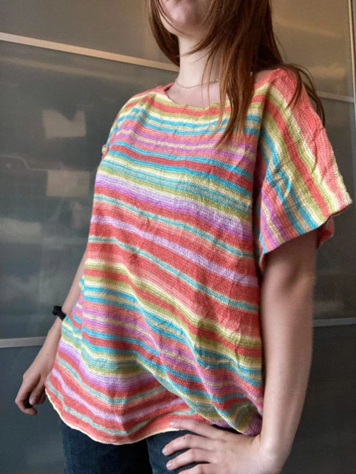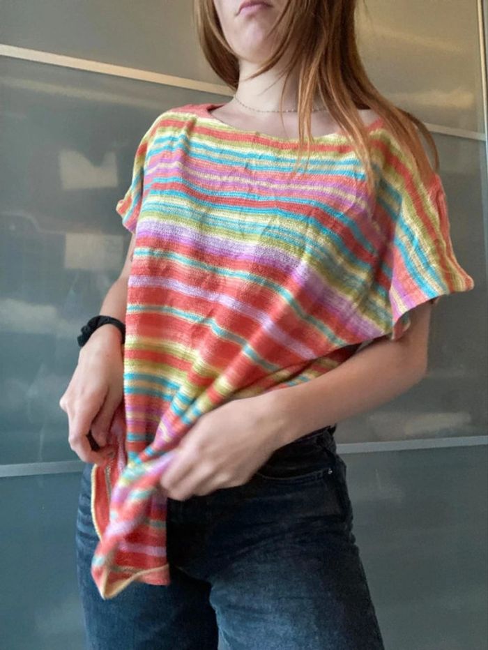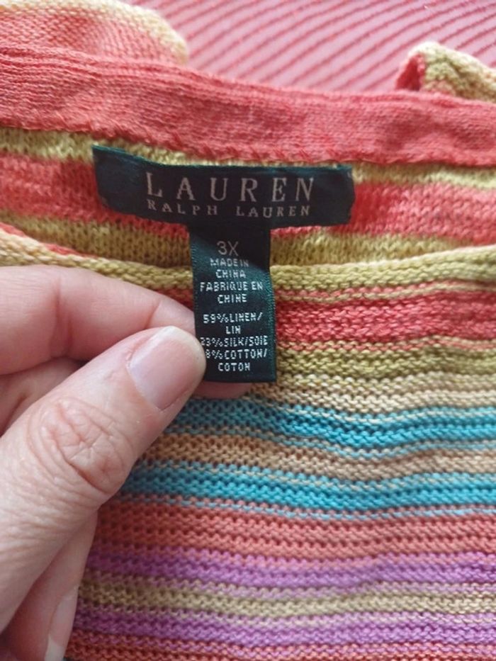 Top ample, multicouleurs, Lauren de Ralph Lauren, taille indiqué 3x, je ne sais pas trop à quoi ça correspond Le mannequin porte en général du S/M Idéal par dessus un maillot de bain #vetementfemmeS_mondressing11_bv #femmeM_mondressing11_bv #femmeL_mondressing11_bv