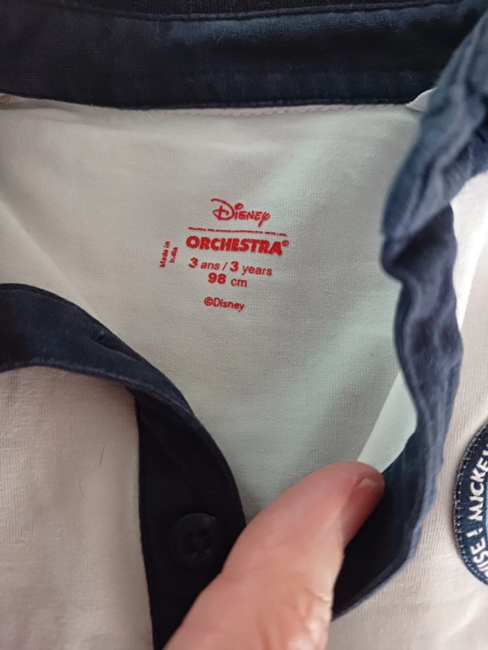Polo disney bye orchestra Mickey 3 ans Bon etat, à noter que le partie blanche est un peu grisaille, par les lavages avec la déteint de la partie basse bleu marine #garcon3ans_mondressing11_bv