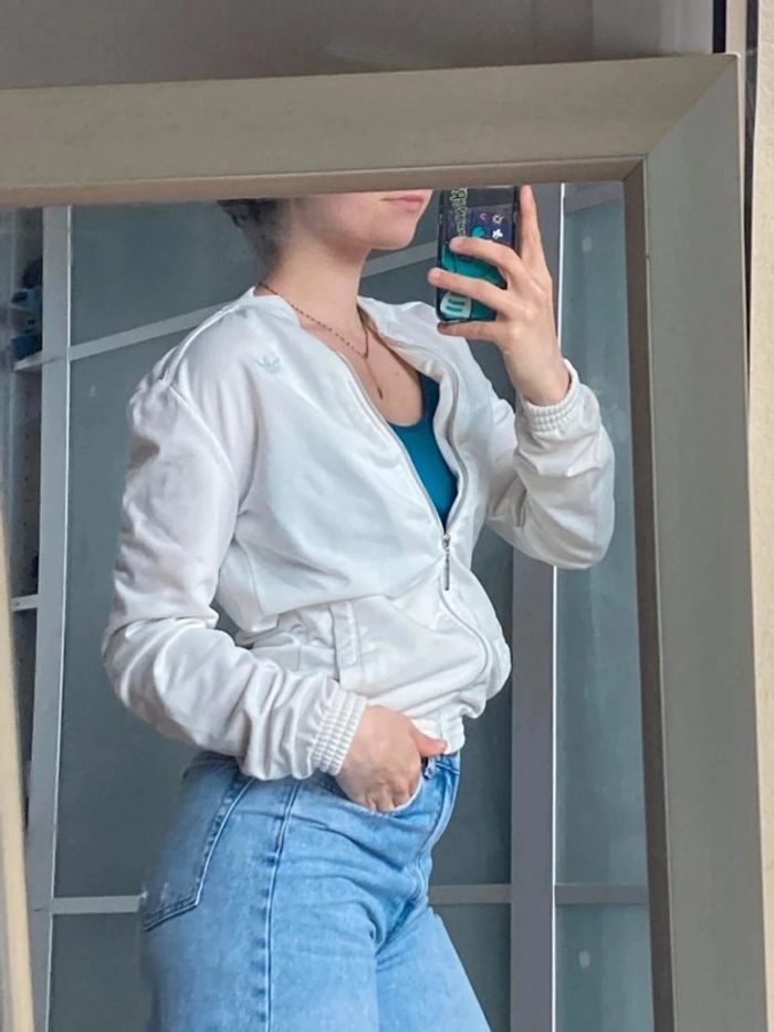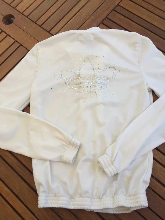 Veste Adidas taille 38 Blanche avec logo Adidas en strass dans le dos 😍 #femmeM_mondressing11_bv Boite K
