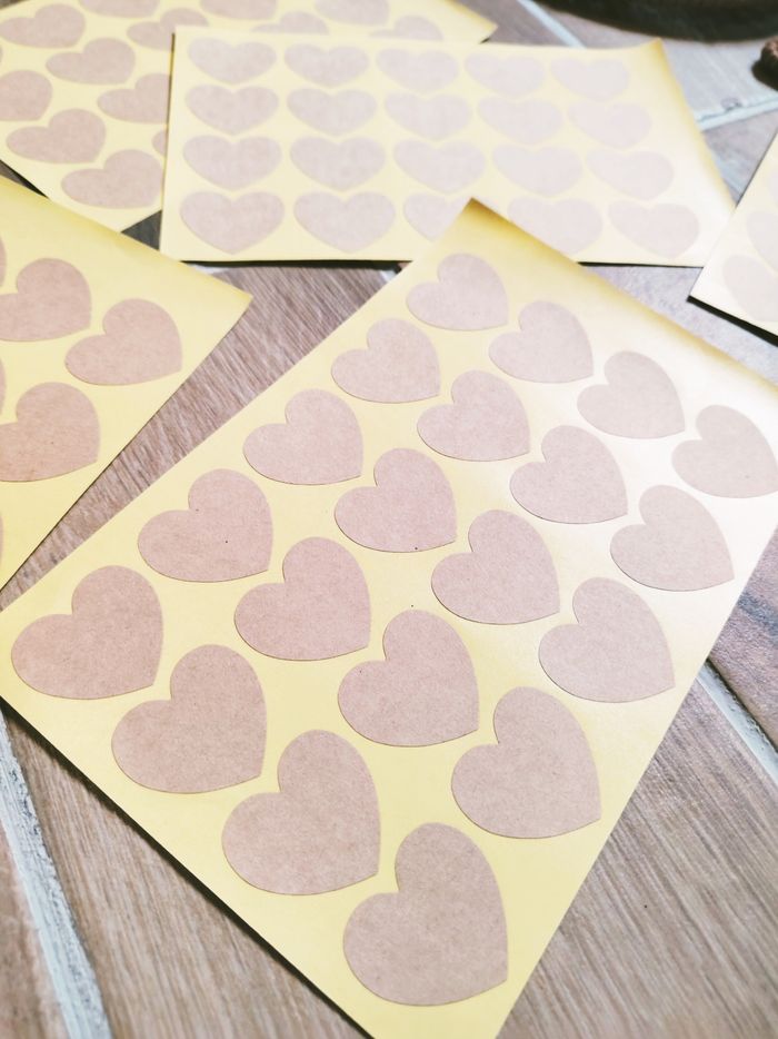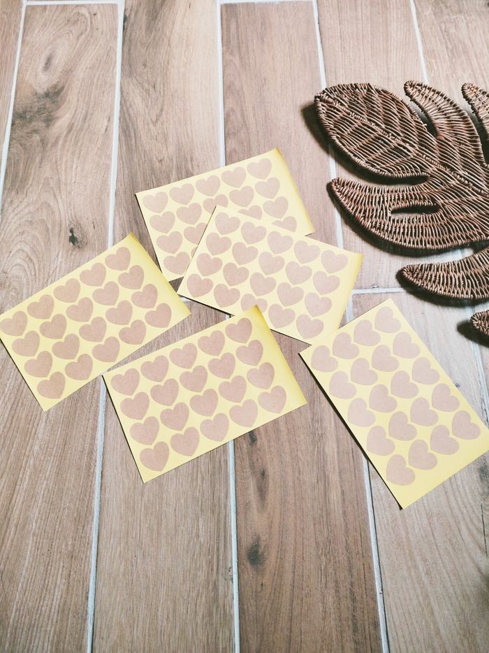 💝Lot de 5 planches de 20 autocollants cœur couleur kraft Neufs 🎀Dimension cœur : 🎀20 autocollants par planche soit 100 cœurs 🎀Dimension : 3.5cm 🎀Idéal pour coller sur vos cadeaux, carte d'anniversaire, faire-part.. ▶️Stock total disponible : 28 planches ❇️N'hésitez pas à créer un lot pour économiser sur les frais de port❇️ Baptême, Anniversaire, Mariage, communion, saint valentin, décoration mariage, déco de fête, décoration de fête, décoration événement, candy bar, baby shower