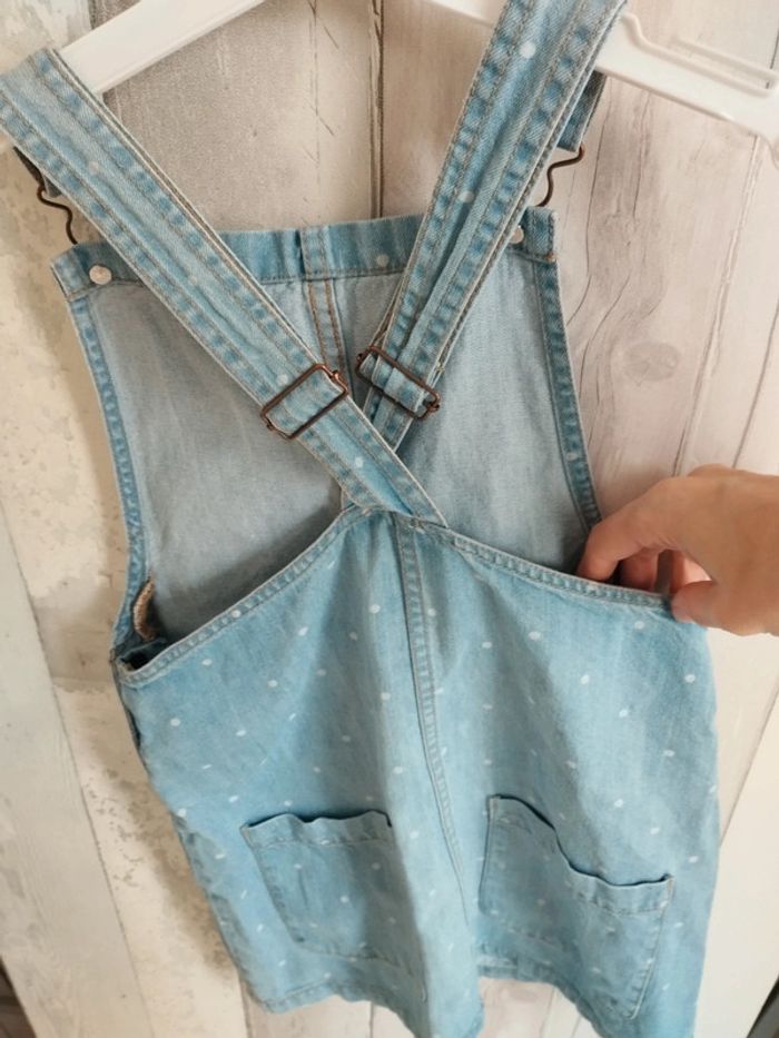 Robe style salopette en jeans bleu à pois blancs. De marque Kiabi, en taille 10 ans. Très bon état #rosered16fille #10arosered16