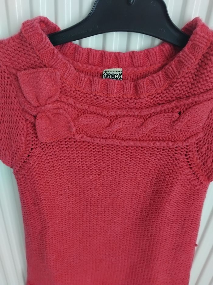Robe manche courte de couleur rouge marque tape à l'oeil. Comprenant deux petites poches en bas de la robe. Petit noeud fantaisie sur le devant au niveau de l'épaule. Présente un peu de bouloche. #fille5ansnade3033