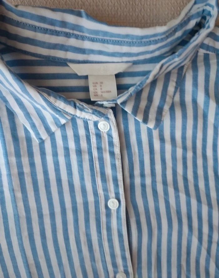 Chemise rayée bleu et blanc H&M - Taille 38 - photo numéro 2