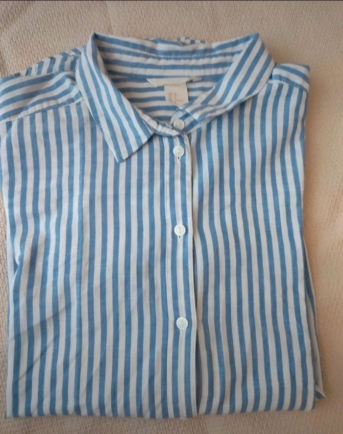 Chemise rayée bleu et blanc H&M - Taille 38 - photo numéro 1