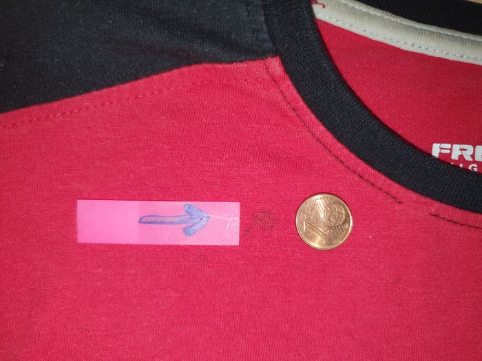 Tache au niveau du cou à droite et à gauche (photos 4 et 5) Bas du logo craquelé (photo 6)