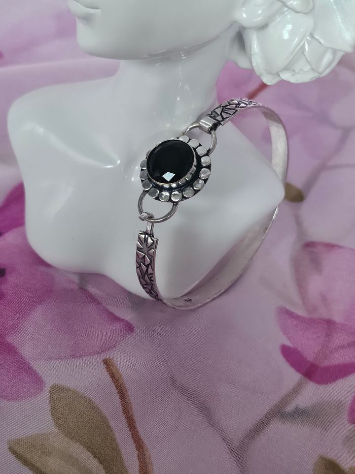 Bracelet texturé en argent sterling 925 avec pierre onyx noir Neuf sans étiquette, jamais porté Piece unique en pierre naturelle SERTIE Poinçonné 925 Ajustable ( s adapte à tous type de poignets)