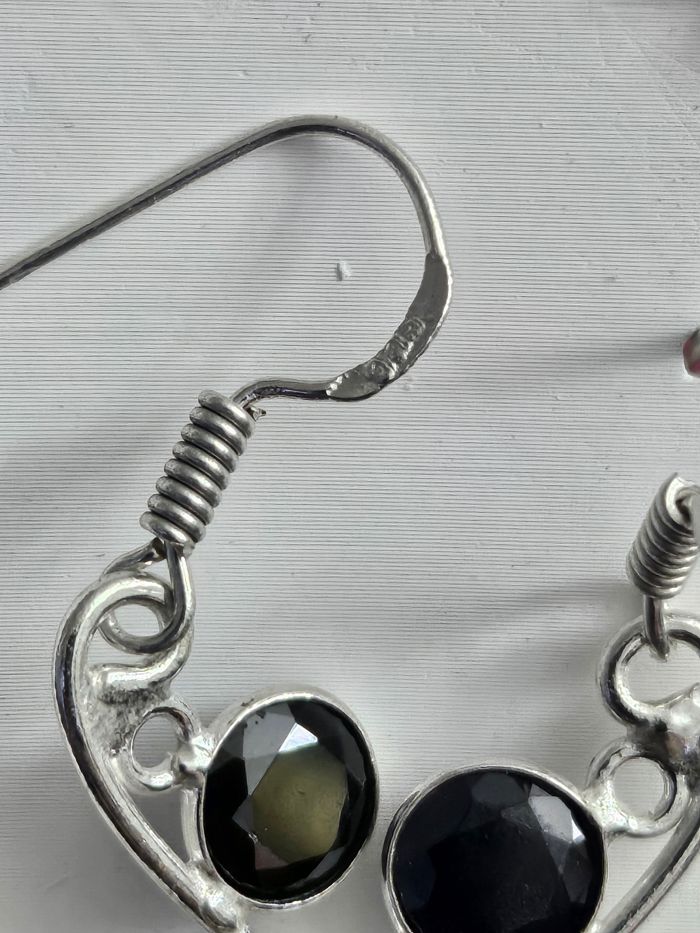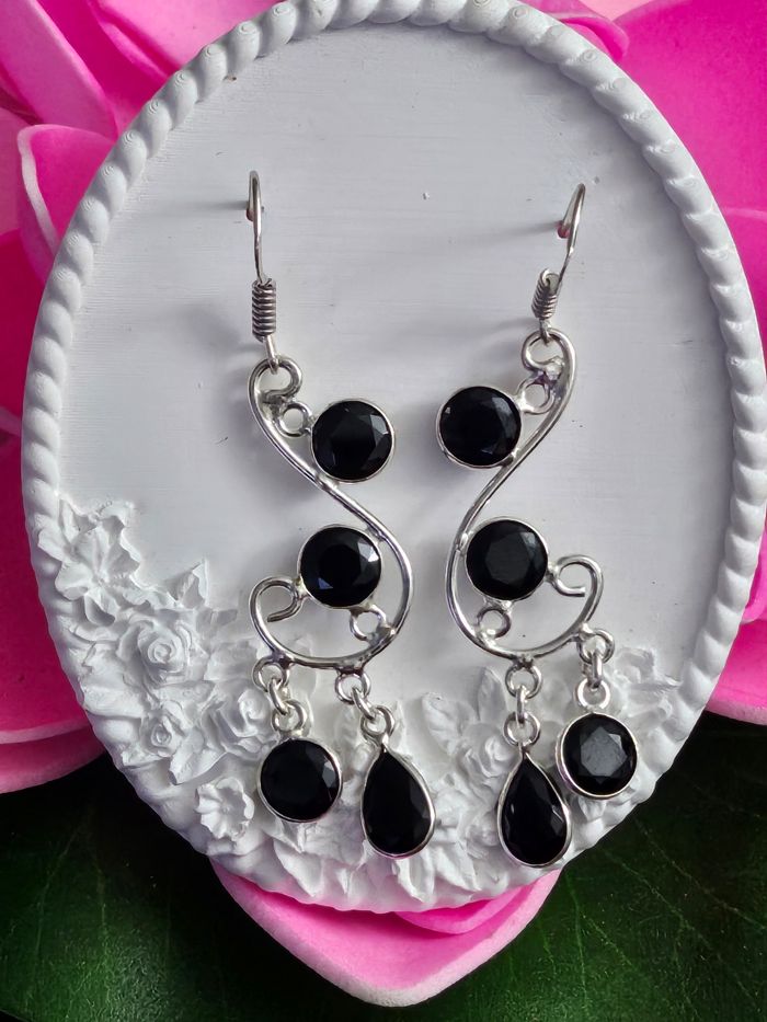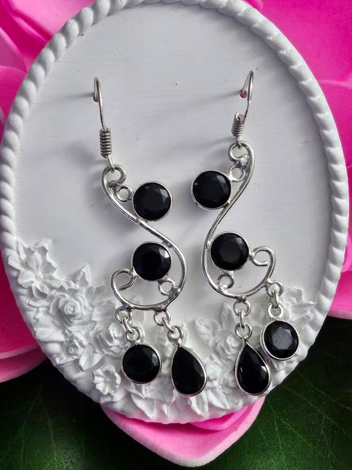 Boucles d oreilles en argent sterling 925 avec pierres onyx noir - photo numéro 1