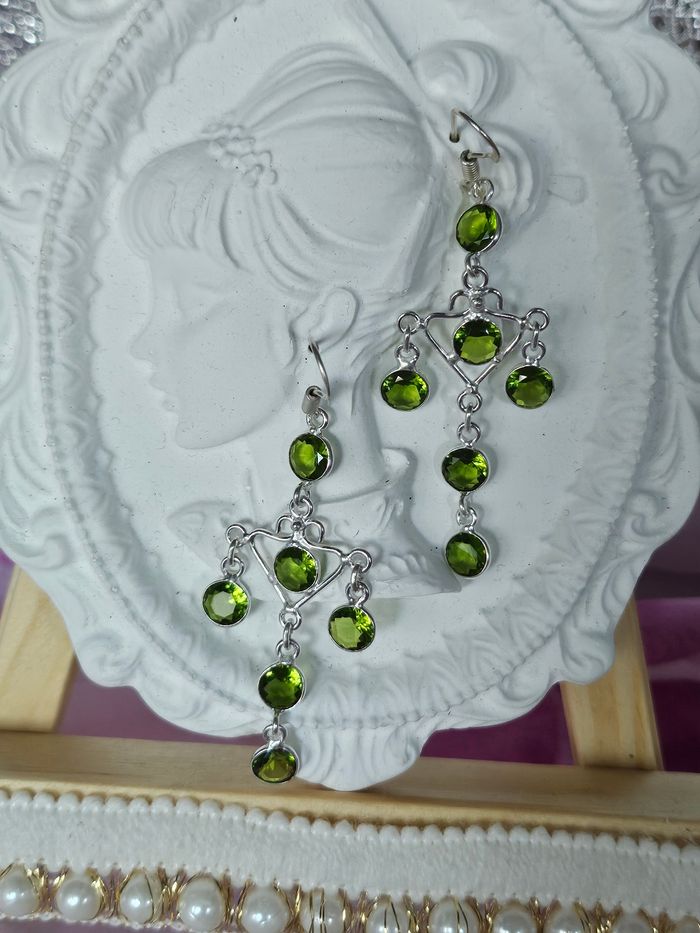 Boucles d oreilles en argent sterling 925 avec pierres peridot - photo numéro 1