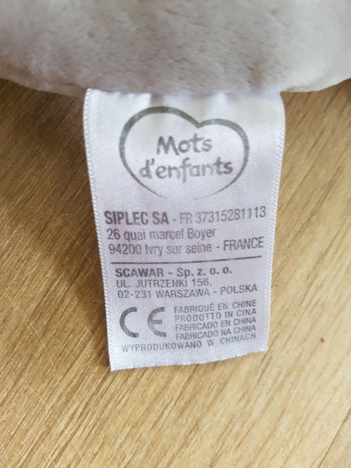 Doudou éléphant Mots d'enfants Avec petit miroir et billes de hochet