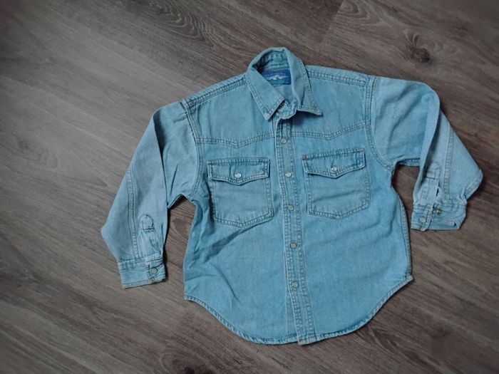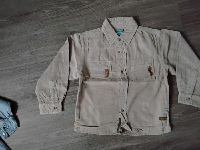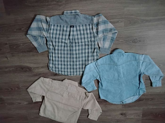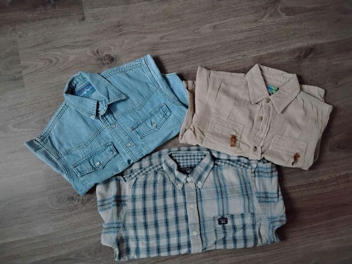 3 chemises garçons 👦 8 ans Une orchestra camel effet côtelée Une vivamode jean. Une complice rayer bleu beige grises Très bon etat