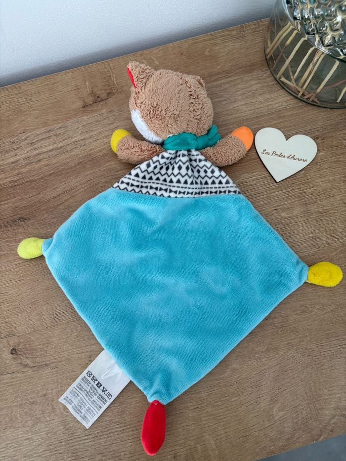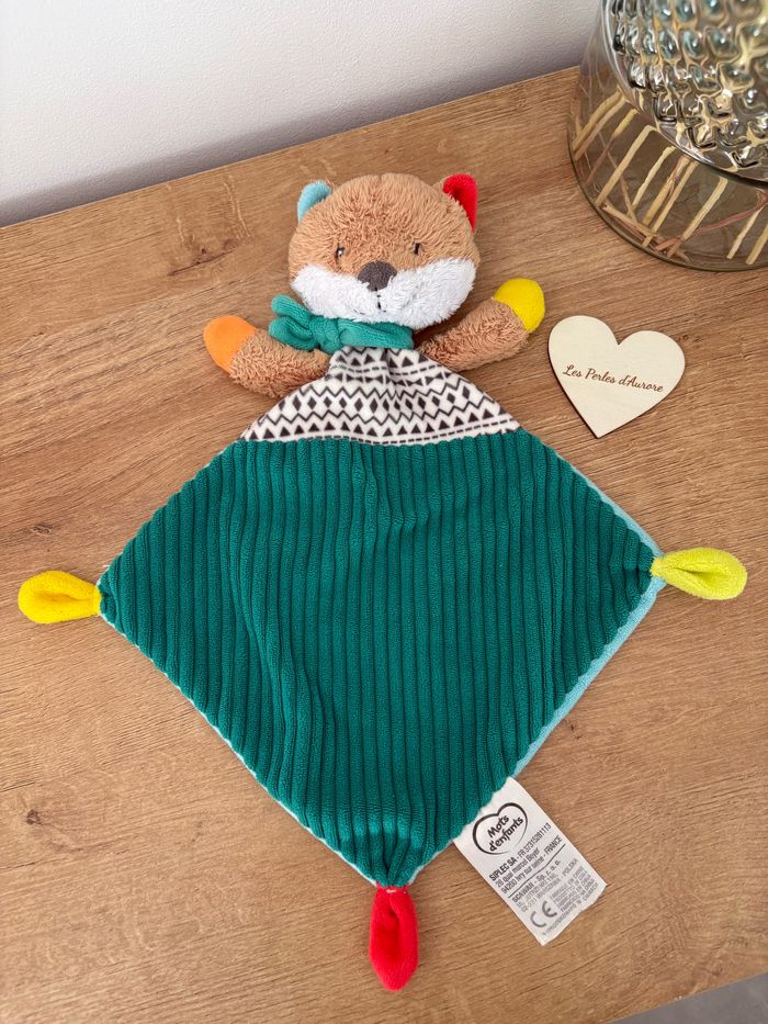 Doudou plat renard vert beige multicolore Mots d'enfants Très bon état Réf: D2