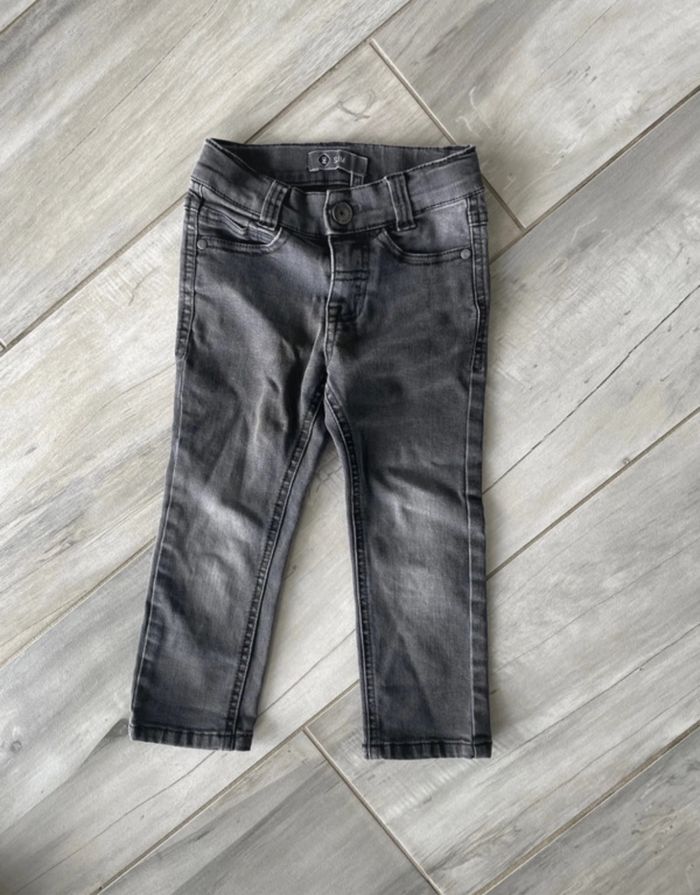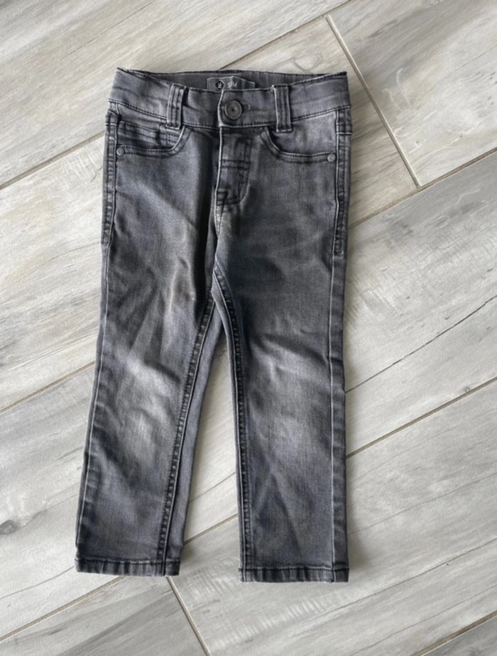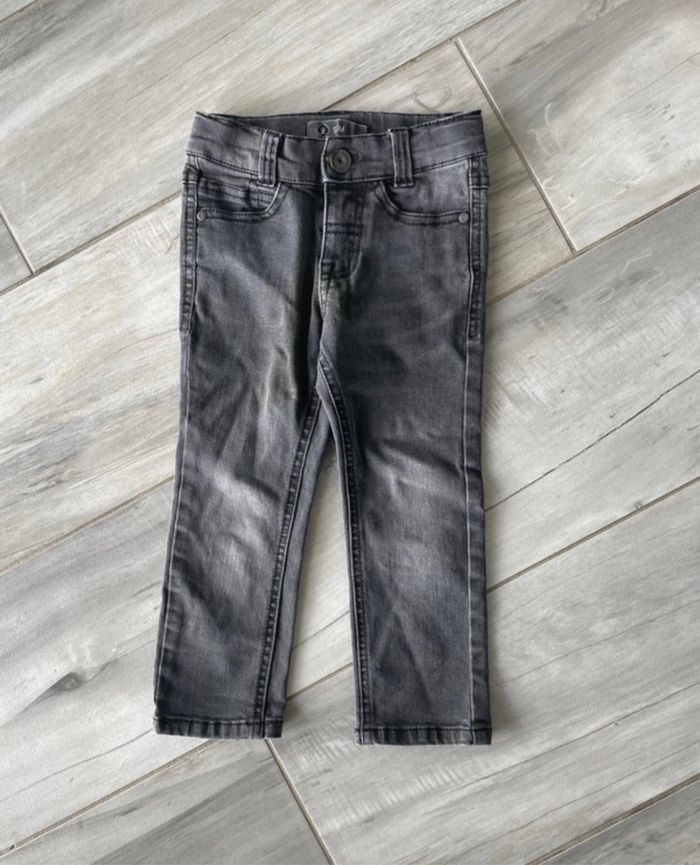 Pantalon jean garçon T 2 ans Z Couleur gris Pantalon slim 2 poches sur le devant et 2 sur l'arrière Fermeture par fermeture éclair et bouton Se resserre à la taille à l'intérieur par élastique et boutons Très bon état