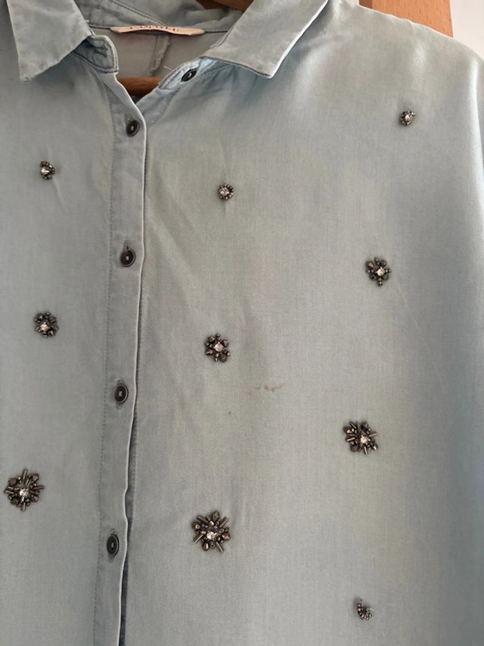 Chemise avec perles Camaïeu Taille M légèrement oversize (convient à un L) Bon état général, voir photos (manques quelques perles et deux petites taches) #dressingannekovetementsfemme