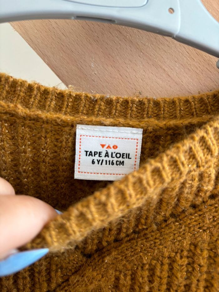 Pull moutarde avec fils dorés Tape à l’Oeil 6 ans Très bon état #dressinganneko6ans