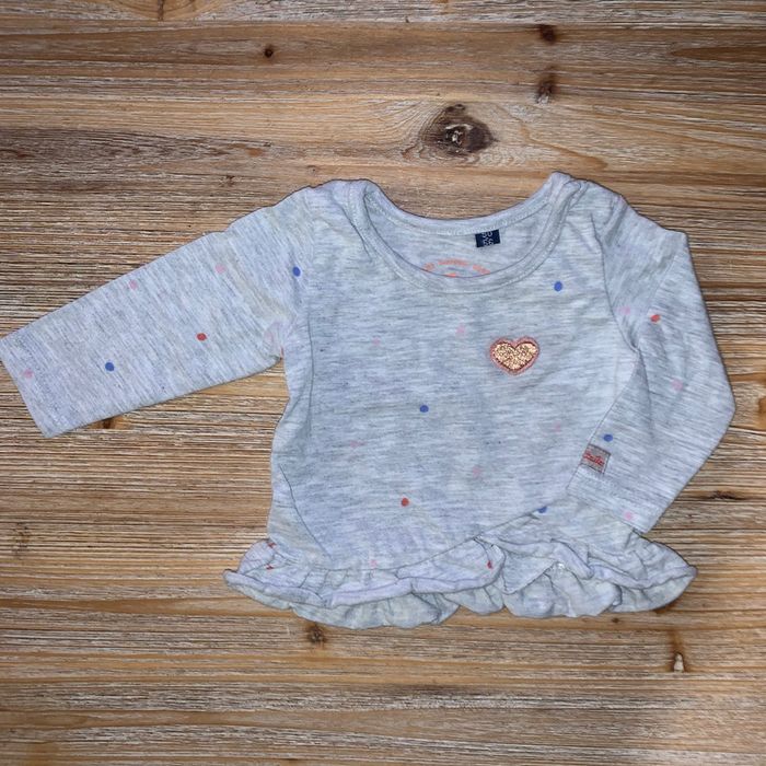 t-shirt Tom Tailor bébé fille gris avec quelques pois en couleur et cœur avec fil or rosé 1 mois #dressingannekobebe036mois