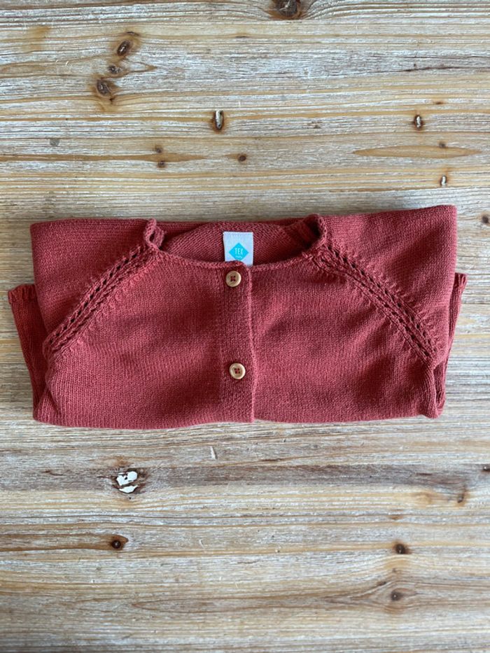 Gilet court orange/rouille Tex 36 mois Col légèrement décousu (cf dernière photo). mis à part ça reste en très bon état #dressingannekobebe3ans