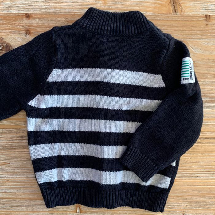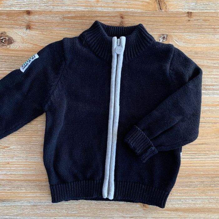 gilet zippé noir à rayures blanches dans le dos très bon état 6 mois #dressingannekobebe036mois