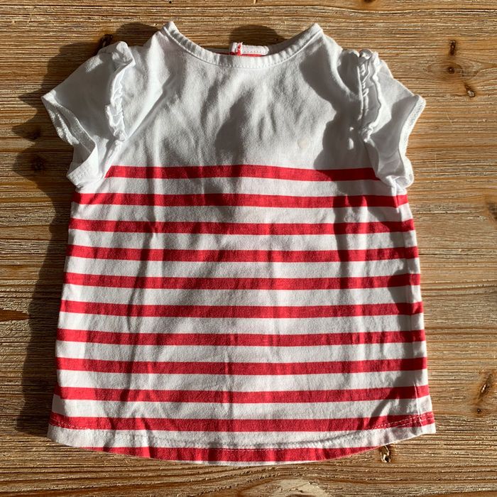 t-shirt bébé fille manches courtes blanc à rayures rouges pressions le long du dos pour un habillage facile très bon état 6 mois #dressingannekobebe036mois