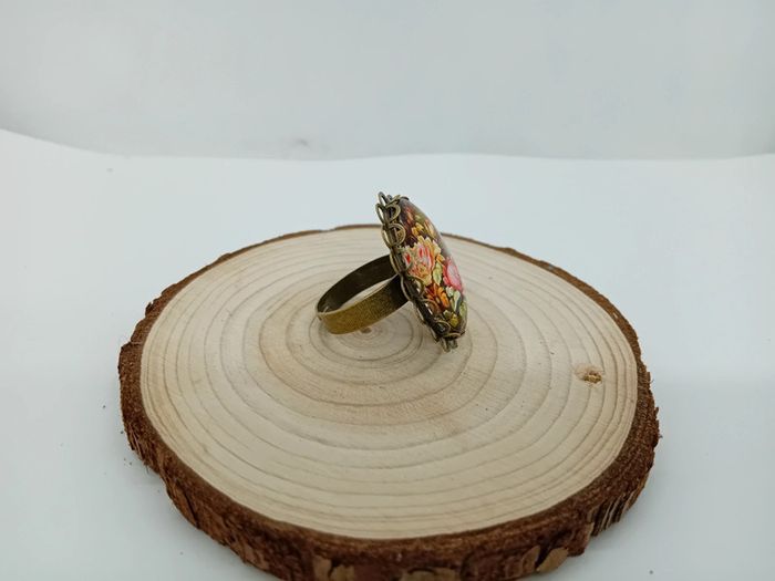 Bague réglable cabochon fleurs effet vintage - photo numéro 3