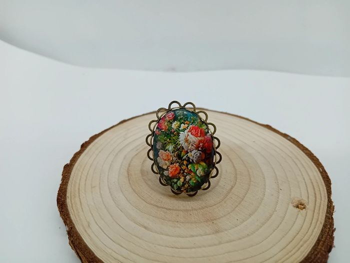 Bague réglable cabochon fleurs effet vintage - photo numéro 1
