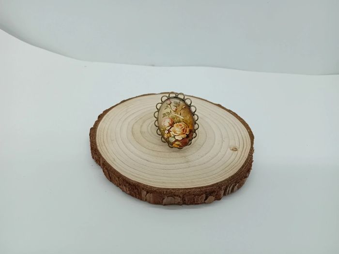 Bague réglable cabochon fleurs effet vintage - photo numéro 1